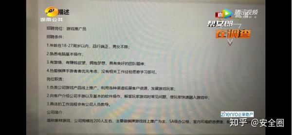 二、诱人的招聘条件不少公司在网打着上招聘“游戏推广员”的旗号招聘员工,有员工表示,公司让他们在网上找客源拉人进来玩游戏,每个人开房打牌便有百分之二十的房费提成,并且拉一个低级场的客户,打满十局可以得到五十元的奖金,高级场打满十局,可获得五百元的奖金。