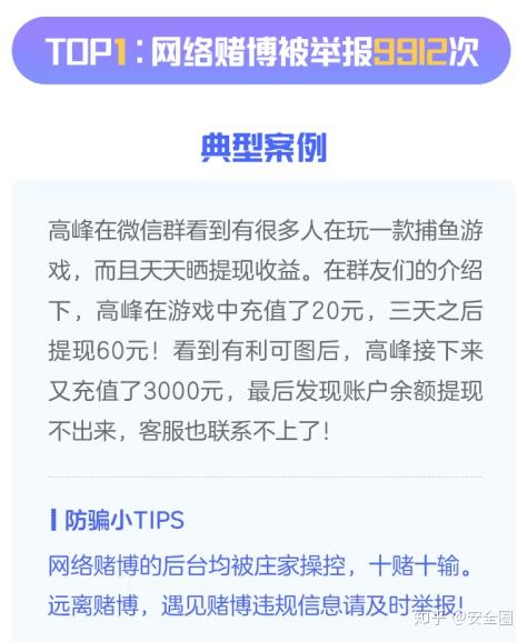 根据腾讯110的统计,近期网络赌博被举报达到了9912次,位居被举报类型的第一名。