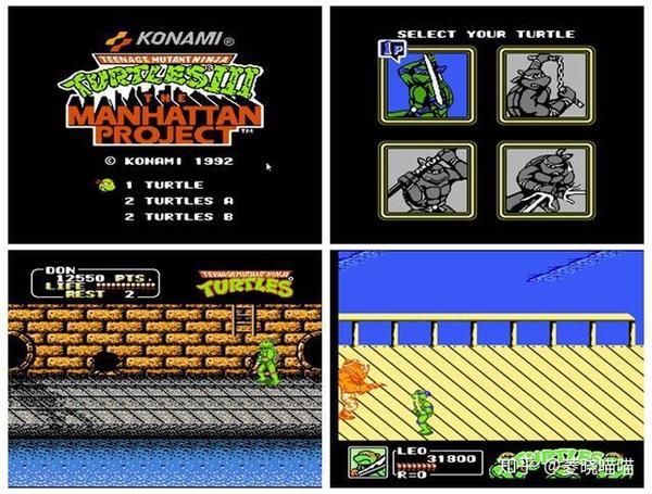 忍者神龟是科乐美以1987年版《忍者神龟》电视动画为剧情蓝本的清版过关游戏